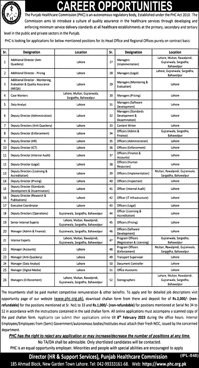 PUNJAB HEALTHCARE DEPARTMENT JOBS 2023